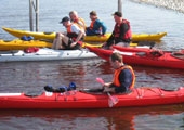 kr. 450,- per persoon, inclusief wetsuits en alle