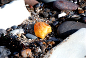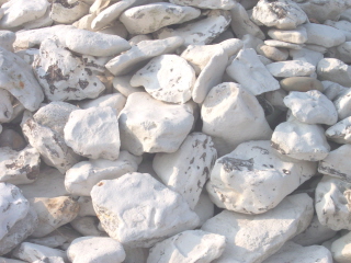 består af større kalksten som er slebet runde af